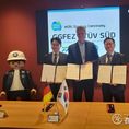 [경기핫타임뉴스=김삼영 기자] 경기경제자유구역청은 독일 시험·인증 전문기관인 독일 티유브이슈드 코리아(TÜV SÜD Korea)가 약 700억 원을 투자해 평택 포승BIX지구에 전기차 및 에너지저장장치(ESS) 관련 시험·인증 인프라를 구축한다고 28일 밝혔다. 김능식 경기경제자유구역청장은 현지시각 27일 오전 독일 뮌헨 티유브이슈드(TUV SUD) 본사에서 휘블 볼프강 회장 및 서정욱 한국대표와 투자협약을 체결했다. 티유브이슈드 코리아는 국제표준에 따른 시험분석 및 시험·인증서비스 핵심 기관으로, 포승BIX지구 산업시설 부지에 700억 원을 투입해 전기차 및 에너지저장장치(ESS) 관련 시험·인증시설을 조성한다. 올 하반기 착공에 들어가 2026년 완공해 시험·인증 서비스를 진행한다는 계획이다. 협약에 따라 경기경제청은 인증시설 건축에 필요한 각종 인·허가는 물론 준공 시까지 발생하는 고충 해결 지원을 약속했다. 티유브이슈드 코리아는 조속한 시험·인증시설 조성으로 지역경제 활성화에 기여하고 친환경적 시설 운영과 관리를 위해 노력하기로 했다. 이번 투자로 평택 포승BIX지구에는 신규고용 40명의 일