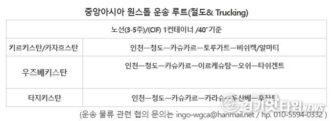 INGO-WGCA 천지득 위원장은 2020년 COVID-19에 대비하여 중앙아시아 국가에 COVID-19 긴급 물자를 공급 추진한바 있다. 당시 한국의 기업들이 중앙아시아 진출에 관심을 두고있는 점과 중앙아시아 진출에 가장 장애요소로 작용하고 있는 물류운송의 문제점을 해결하는데 관심을 갖게 됐다고 이러한 장애요소를 극복하기 위한 방법으로 관련 전문기관과 협력하여 물류운송 원스톱(One Stop System)의 운송시스템 구축이 시급하다는 점을 강조하여 본 서비스 체계를 갖추게 됐고 이의 후속 사업으로 금번 '(사)전국중고자동차 및 부품유통 수출입조합연합회' 정일수 회장,과 '△(INGO-WGCA)국제기구세계녹색기후기구오프라인상품등록세계지원본부' 천지득 집행위원장은 업무협약을 통해 국내의 중고자동차 및 부품 수출을 위한 원스톱(One-Stop)시스템을 구축하기로 했다.