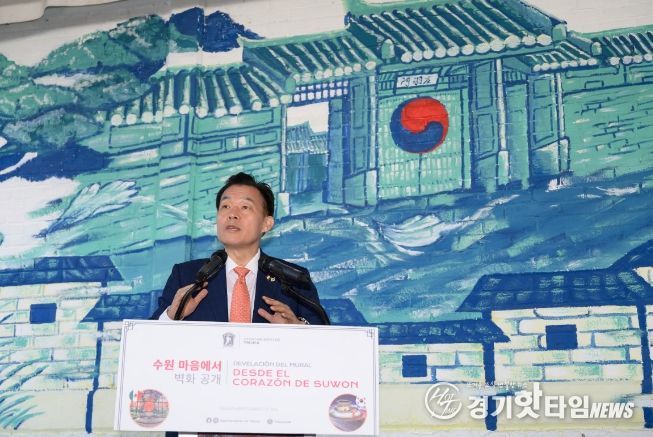 [경기핫타임뉴스=김삼영 기자] 지구 반대편 멕시코 톨루카시에 ‘수원 정원’이 생겼다. 정원 옆에는 수원화성과 화성행궁 등을 그린 대형 벽화 작품이 들어섰다.