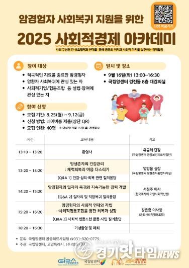 고양산업진흥원 고양시사회적경제지원센터가 오는 9월 16일 국립암센터에서‘2025년 고양시 사회적경제 아카데미’를 개최한다.