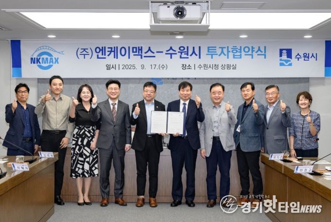 수원시와 ㈜엔케이맥스는 17일 시청 상황실서 협약을 체결하고, 협력을 약속했다. 협약식에는 김현수 제1부시장, ㈜엔케이맥스 김용만 대표 등이 참석했다.