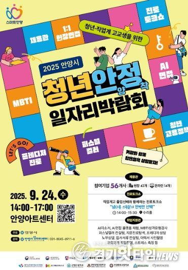 [경기핫타임뉴스=김삼영 기자] 안양시는 청년·직업계 고교생을 위한 ‘청년 안양정착 일자리 박람회’를 24일 오후 2시 안양아트센터에서 개최한다고 19일 밝혔다.