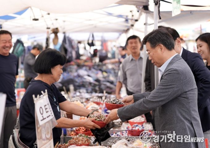 신 시장은 모란민속5일장에서 장바구니를 든 시민들과 인사를 나누며 “풍성한 한가위 보내시라”는 덕담을 건넸다. 이어 과일가게와 채소가게 등을 둘러보며 상권 경기를 점검하고 상인들의 의견을 청취했다.