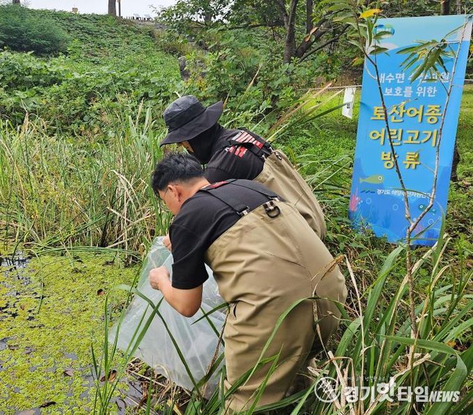[경기핫타임뉴스=김삼영 기자] 경기도해양수산자원연구소가 토종 민물고기 종 보존과 하천 생태계 복원을 위해 경기도 보호 어종인 버들붕어 치어 1천 마리를 9월 30일 광주시 경안천습지생태공원에 방류했다.