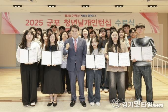[경기핫타임뉴스=김삼영 기자] 군포시는 9월 30일 군포 청년날개 인턴십(체험형 공공인턴)을 성공적으로 마친 인턴들의 수료식을 개최했다.
