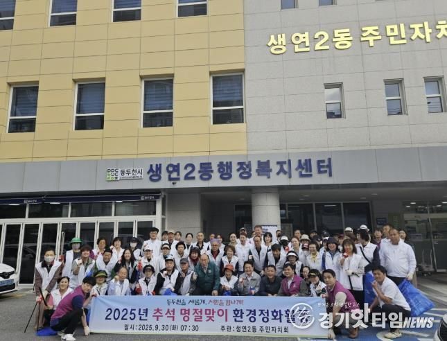 [경기핫타임뉴스=김형철 기자] 동두천시 생연2동 행정복지센터는 9월 30일 추석을 앞두고 사회단체 회원과 동 직원 등 80여 명이 참여한 가운데 관내 환경정화 활동을 실시했다.