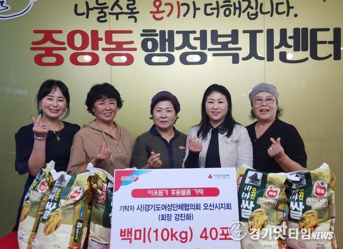 [경기핫타임뉴스=김삼영 기자] 사단법인 경기도여성단체협의회 오산시지회는 지난 10월 1일, 추석 명절을 앞두고 지역 내 어려운 이웃을 위해 백미(10kg) 5포씩을 오산시 관내 8개 동 행정복지센터에 각각 기탁했다.