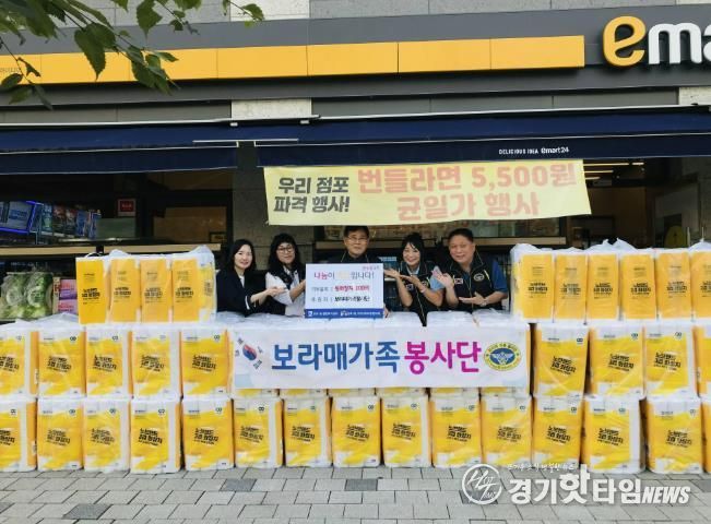 공군전우회 봉사 모임인 보라매가족봉사단은 망포1동의 어려운 이웃을 위해 꾸준히 후원을 해오고 있으며, 지난 1월에는 컵라면 100박스, 지난 6월에는 고독사 위험군 1인가구를 위해 컵라면 150박스, 이번 추석 명절에는 롤화장지 100팩을 후원하여 지역사회에 훈훈한 미담이 되고 있다.
