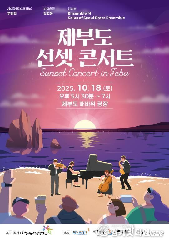 [경기핫타임뉴스=김삼영 기자] 화성시문화관광재단은 아름다운 서해의 석양을 배경으로 클래식 공연 ‘제부도 선셋 콘서트(Sunset Concert in Jebu)’를 오는 10월 18일 5시 30분 제부도 매바위 광장에서 개최한다. 이번 공연은 제부도를 단순 방문지를 넘어 머무는 체류형 관광지로 전환하고, 서해안 관광 활성화의 기반을 마련하는 데 목적이 있다.
