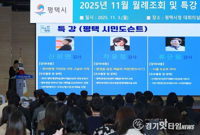 [경기핫타임뉴스=김삼영 기자] 평택시는 지난 11월 3일 평택시청 직원 180명이 참여한 가운데 평택 ‘시민도슨트’의 '평택을 도슨트하자' 특강을 진행했다.