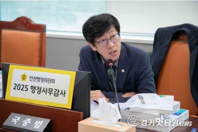 [경기핫타임뉴스=김삼영 기자] 경기도의회 안전행정위원회 국중범 의원(더불어민주당, 성남4)은 14일 경기도 안전관리실을 대상으로 한 행정사무감사에서 풍수해·지진재해보험 도비 보조금 집행률의 시·군 간 편차가 심각하다고 지적하며, 제도 실효성 제고를 위한 적극적인 대책 마련을 촉구했다.