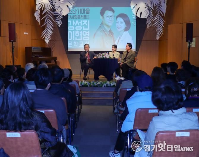 [경기핫타임뉴스=김형철 기자] 배우 강성진과 방송인 이현영 부부가 지난 13일 양평군 황순원문학촌 소나기마을 첫사랑콘서트Ⅱ 문학교실에서 ‘가족이라는 선물’을 주제로 특별 강연을 진행했다. 이번 첫사랑콘서트Ⅱ는 매주 목요일 열리는 한국 문화 예술계 저명인사 초청 강연 프로그램 ‘2025 소나기마을 문학교실’과 공동으로 마련됐다.