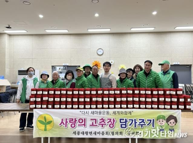 [경기핫타임뉴스=김형철 기자] 여주시 세종대왕면 남‧녀 새마을회는 지난 21일 회원 20여 명이 참여한 가운데 ‘헌 옷 수집 운동’ 과 정성껏 만든 고추장과 김치, 직접 재배한 쌀을 28개 마을에 전달하는 ‘사랑의 고추장 담그기 행사’를 진행했다.