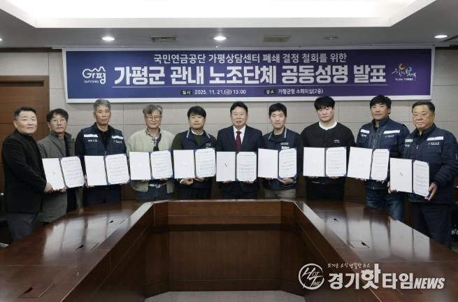 [경기핫타임뉴스=김형철 기자] 가평군과 지역 노동조합들이 국민연금공단의 가평상담센터 폐쇄 방침에 맞서 강력한 공동 대응에 나섰다.