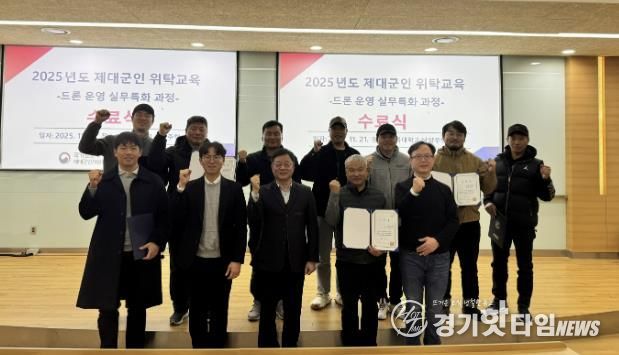 [경기핫타임뉴스=김삼영 기자] 경기북부보훈지청 제대군인지원센터는 11월 21일에 경복대학교 평생교육대학(경기 남양주)에서 9월에 시작된 ‘드론 운영 실무특화’ 위탁교육과정을 성공적으로 마무리하고, 총 10명의 교육생 전원이 교육을 수료했다고 밝혔다.