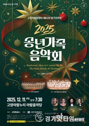 [경기핫타임뉴스=김형철 기자] 고양특례시를 대표하는 문화사절단인 고양시립합창단이 오는 12월 11일 저녁 7시 30분, 고양아람누리 아람음악당에서 제82회 정기연주회‘2025 송년 가족 음악회’를 개최한다.