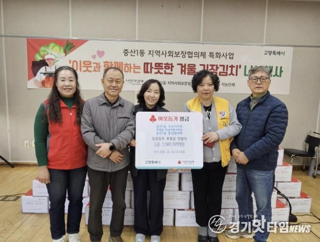 [경기핫타임뉴스=김형철 기자] 고양특례시 일산동구 중산1동은 지난 21일, 3개 직능단체와 지역사회보장협의체 특화사업 ‘사랑담은 김장김치 나눔’행사를 위한 후원금 전달식을 개최했다고 밝혔다.