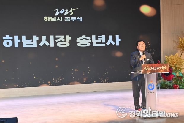 [경기핫타임뉴스=김형철 기자] 하남시는 31일 시청 대강당에서 전 직원이 참석한 가운데 2025년 종무식을 개최하고, 한 해 동안의 성과를 돌아보며 2026년 시정 운영 방향을 공유했다. 이날 종무식은 2025년 시정 주요 성과를 담은 영상 상영을 시작으로, 시장 송년사, K-pop 댄스 챌린지 공연, 유공자 표창 수여 순으로 진행됐다.