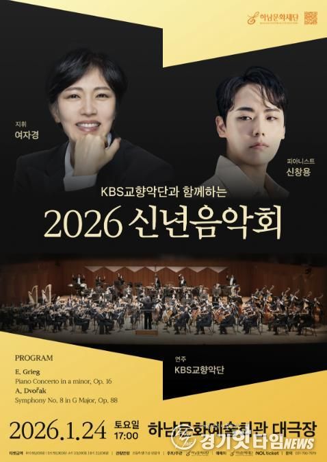 [경기핫타임뉴스=김형철 기자] (재)하남문화재단은 대한민국을 대표하는 KBS교향악단과 함께하는 '2026년 신년음악회'가 전석 매진을 기록하며, 오는 2026년 1월 24일 오후 5시, 하남문화예술회관 대극장에서 시민들을 만날 준비를 마쳤다고 밝혔다.