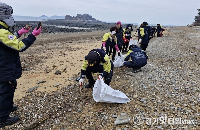 [경기핫타임뉴스=김삼영 기자] 화성 남녀의용소방대가 덩어리 기름 유출로 큰 피해를 입은 국화도를 찾아 해안가 방재 활동에 나섰다.