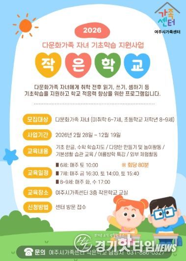[경기핫타임뉴스=김형철 기자] 여주시가족센터는 다문화가족 자녀 기초학습 지원사업 ‘작은학교’를 운영한다고 밝혔다.