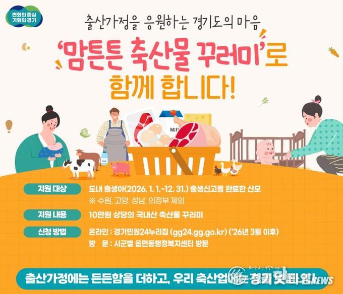 [경기핫타임뉴스=김삼영 기자] 경기도는 도내 27개 시군과 함께 ‘2026년도 맘튼튼 축산물꾸러미 지원사업’을 오는 3월부터 추진한다.