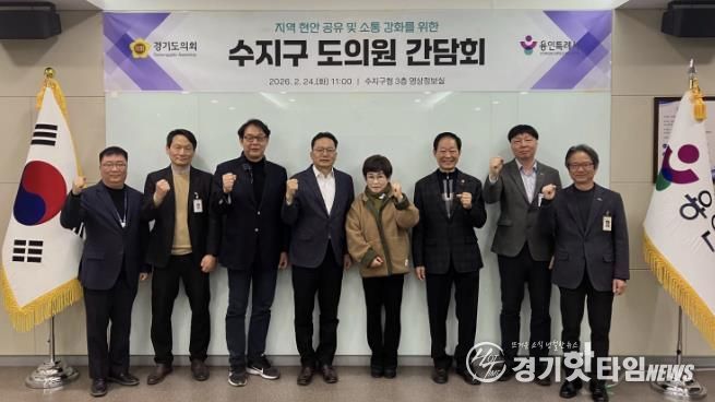 [경기핫타임뉴스=김삼영 기자] 용인특례시 수지구는 24일 구청 영상정보실에서 경기도의회 의원들과 간담회를 열고 지역 주요 현안과 특별조정교부금 사업 추진 현황을 공유했다고 25일 밝혔다.