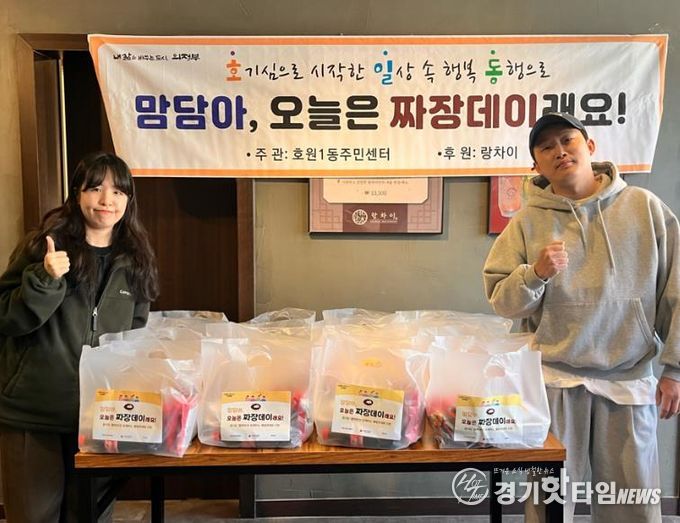 이번 후원은 지역 내 ▲한부모가족 ▲장애인가구 ▲중장년 1인가구 등 취약계층의 식생활 안정을 돕기 위해 마련됐다. 짜장꾸러미는 짜장소스, 음료수, 라면 등으로 구성됐으며 호원1동에서 선정한 취약가구 25가구에 매달 직접 전달할 예정이다.