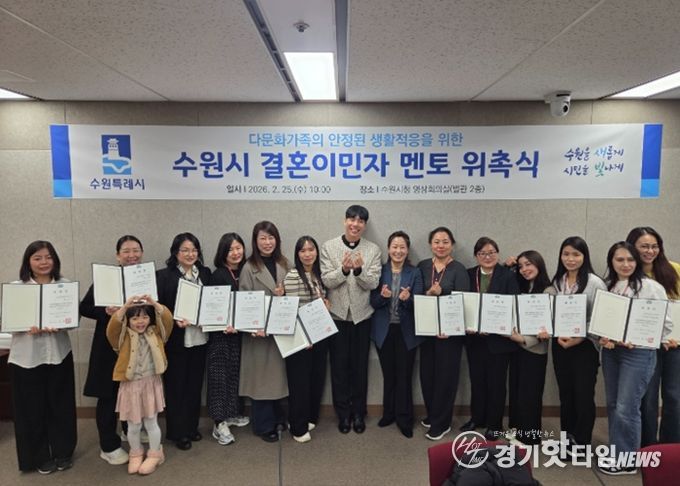 [경기핫타임뉴스=김삼영 기자] 수원특례시가 25일 시청 영상회의실에서 ‘2026년 결혼이민자 멘토 위촉식’을 열고 선배 이민자 멘토 15명을 위촉했다.
