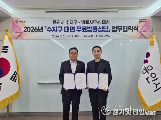 이를 위해 구는 25일 수지구청에서 지역 법률사무소 태성과 업무협약을 체결했다.