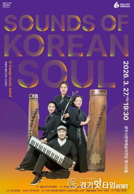 [경기핫타임뉴스=김삼영 기자] 재단법인 광주시문화재단은 오는 3월 27일 오후 7시 30분, 광주시문화예술의전당 맹사성홀에서 국악 “Sounds of Korean Soul”를 개최한다. 이번 공연은 뉴욕과 뉴저지를 기반으로 활동하는 지화자밴드(G-hwaja music band)의 한국 첫 무대다.