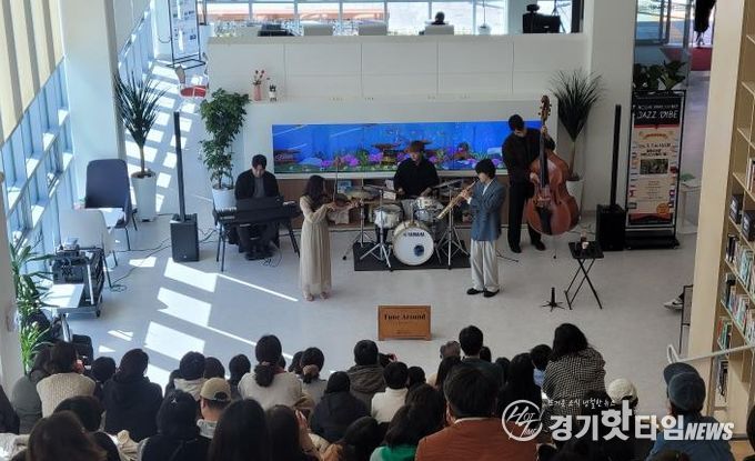 [경기핫타임뉴스=김삼영 기자] 오산시는 지난 7일 청학도서관 1층 커뮤니티스테어에서 열린 재개관 기념 공연 ‘2026 음악이 흐르는 도서관 콘서트 – 재즈&북(Book)의 향연: JAZZ VIBE’가 시민들의 큰 호응 속에 성황리에 마무리됐다고 밝혔다.