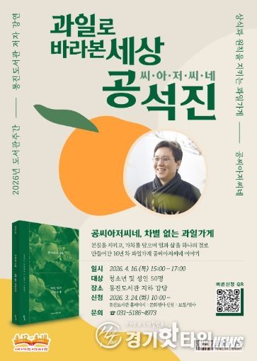 [경기핫타임뉴스=김형철 기자] 김포시 통진도서관은 제62회 도서관주간을 맞아 오는 4월 16일 오후 3시 '공씨아저씨네, 차별 없는 과일가게'의 저자 공석진 대표를 초청해 ‘과일로 바라본 세상’ 강연을 운영한다.