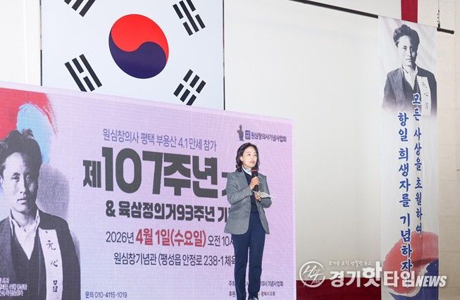 [경기핫타임뉴스=김삼영 기자] 평택시의회는 4월 1일, 팽성레포츠공원 실내체육관(평택시 팽성읍 안정로)에서 열린‘원심창 의사 제93주년 육삼정 의거 및 4.1 만세 기념식’에 참석해 원심창 의사의 항일정신을 기렸다.