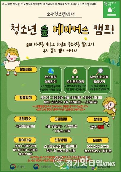 김미희 소사청소년센터장은 “숲 기반 활동을 통해 산림의 가치를 인식하고 생태감수성을 함양하기 바란다. 나아가 일상 속에서 친환경 활동을 자발적으로 주도하는 청소년으로 성장하길 기대한다”고 전했다.