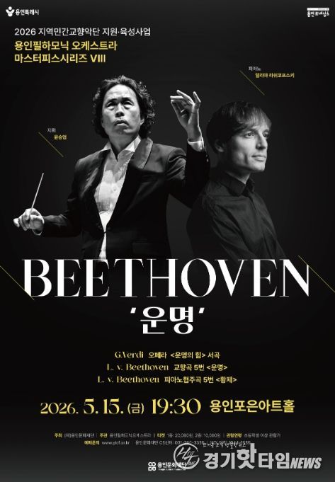 [경기핫타임뉴스=김삼영 기자] 용인문화재단은 오는 5월 15일 오후 7시 30분 용인포은아트홀에서 ‘2026년 지역민간교향악단 지원·육성사업’의 첫 공연으로 용인필하모닉오케스트라의 기획공연 '마스터피스 시리즈 Ⅷ - 베토벤 ‘운명’'을 선보인다.