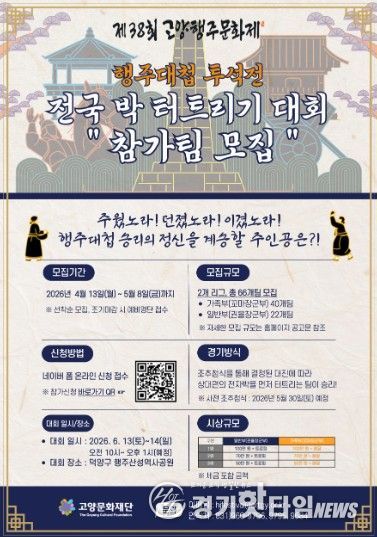 [경기핫타임뉴스=김형철 기자] 고양문화재단은 오는 6월 열릴 고양행주문화제의 대표 프로그램 중 하나인 행주대첩 투석전 ‘전국 박 터트리기 대회’의 참가팀을 오는 5월 8일까지 모집한다.