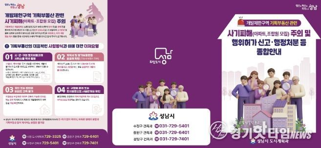 [경기핫타임뉴스=김삼영 기자] 성남시는 최근 개발이 불가능하거나 제한적인 개발제한구역(그린벨트) 내 토지를 곧 해제될 것처럼 속여 고가에 판매하는 이른바 ‘기획부동산’ 사기가 증가함에 따라 시민 주의를 당부하고, 안내문을 제작·배부한다고 밝혔다.