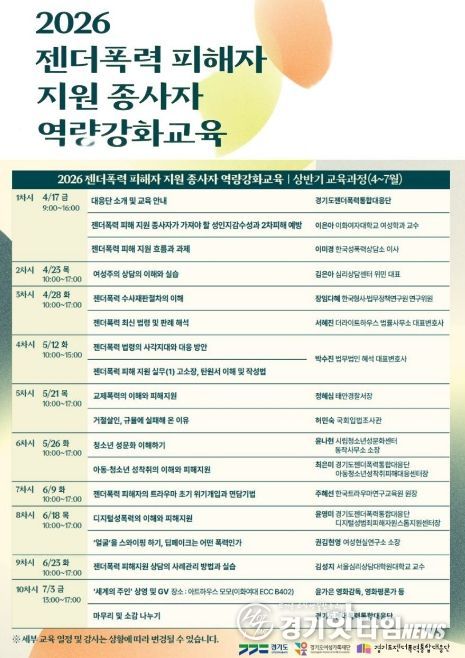 [경기핫타임뉴스=김삼영 기자] 경기도와 경기도젠더폭력통합대응단이 17일 도내 젠더폭력 피해 지원 현장 종사자들의 전문성 향상을 위한 ‘2026 역량강화 교육’ 상반기 과정을 시작하며 현장 대응력 강화에 나섰다.