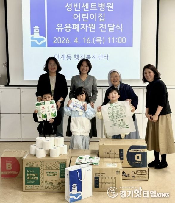 [경기핫타임뉴스=김삼영 기자] 수원시 팔달구 인계동은 지난 16일 오전, 성빈센트병원 어린이집으로부터 아이들이 정성껏 모은 유용 생활 폐자원을 전달받았다고 밝혔다.