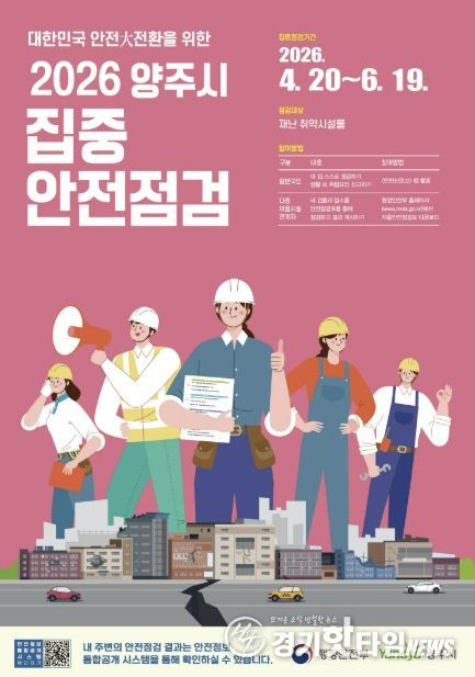 [경기핫타임뉴스=김형철 기자] 시민 안전 사각지대 해소를 위해 경기 양주시가 ‘2026년 집중 안전 점검’을 추진한다.