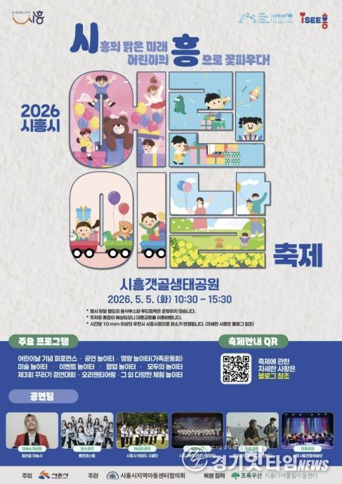 [경기핫타임뉴스=김삼영 기자] 시흥시는 오는 5월 5일 어린이날을 맞아 시흥갯골생태공원에서 ‘제104회 어린이날 기념행사’를 개최한다.