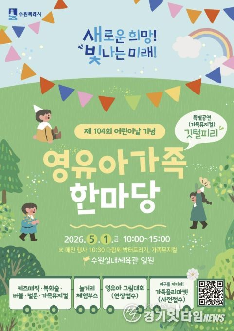 수원시 관계자는 “어린이날을 맞아 아이들이 즐겁게 뛰놀고 가족이 함께 소중한 시간을 보낼 수 있도록 행사를 준비했다”며 “영유아와 가족 모두에게 따뜻한 추억이 되는 하루가 되길 바란다”고 말했다.