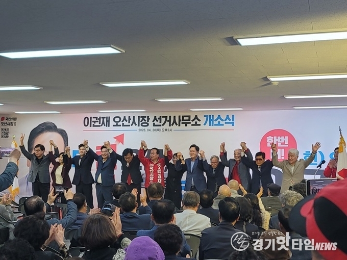 [경기핫타임뉴스=김삼영 기자] 이권재 국민의힘 오산시장 후보가 선거사무소 개소식을 열고 재선 도전을 위한 본격적인 선거전에 돌입했다.