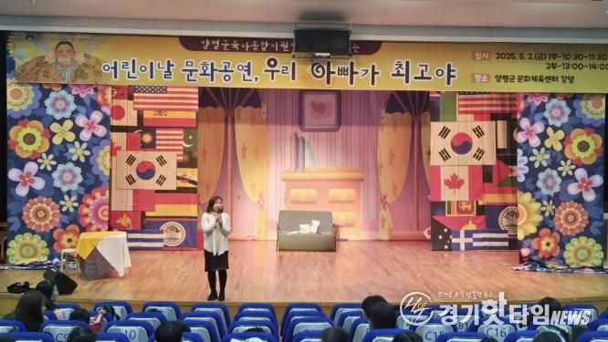 [경기핫타임뉴스=김형철 기자] 양평군육아종합지원센터는 제103회 어린이날을 맞아 5월 2일 양평군 문화체육센터 대강당에서 어린이날 기념 문화공연 ‘우리 아빠가 최고야’를 성황리에 개최했다. 이번 공연은 지역 내 영유아와 가족들을 초청해, 어린이들에게 행복한 추억을 선사하고 가족 간의 사랑과 유대감을 되새길 수 있도록 마련된 뜻깊은 행사였다.