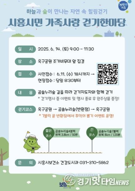 [경기핫타임뉴스=김삼영 기자] 시흥시가 2025년 첫 번째'시흥시민 가족사랑 걷기한마당'을 6월 14일옥구공원에서 개최한다.