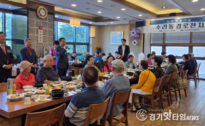 [경기핫타임뉴스=김삼영 기자] 군포시 수리동 주민자치회(회장 고진해)는 제29회 노인의 날을 맞아 지난 10월 2일 수리동 어르신들을 대상으로 경로잔치를 개최했다. 이번 행사는 하은호 군포시장, 이학영 국회부의장 등 여러 내빈과 수리동 직능단체장들이 어르신 100여 명과 뜻깊은 자리를 함께했다.