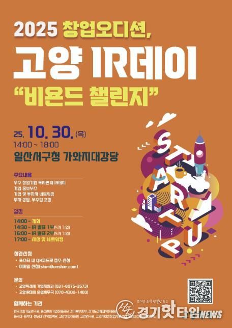[경기핫타임뉴스=김형철 기자] 고양특례시는 오는 30일 일산서구청 가와지 대강당에서 창업오디션‘2025년 하반기 고양 아이알(IR)데이’를 개최한다고 밝혔다.