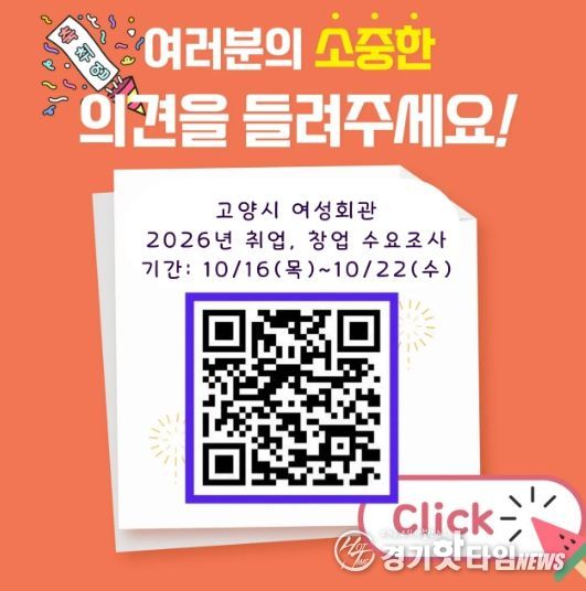 이번 조사는 고양시민을 대상으로 22일 오후 5시까지 진행되며, 온라인 설문을 통해 참여할 수 있다. 설문은 QR코드를 통해 접속 가능하며, 취업과 창업 분야에 대한 실질적인 수요를 파악하는 데 중점을 둔다.