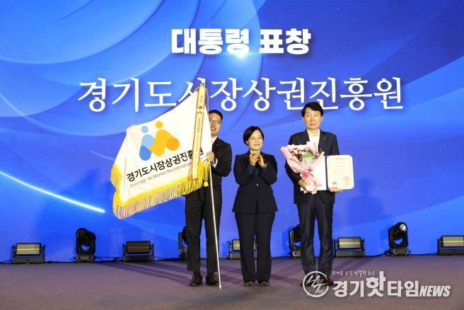 [경기핫타임뉴스=김삼영 기자] 경기도시장상권진흥원이 중소벤처기업부 주최로 열린 ‘제21회 전국우수시장박람회’ 시상식에서 전통시장·상점가 활성화 공로를 인정받아 대통령 표창을 수상했다.